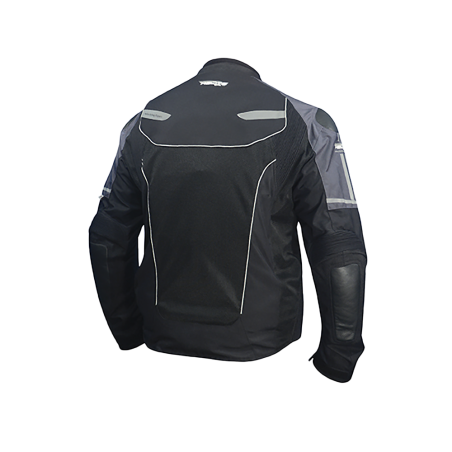 Ses protections renforcées au niveau des épaules et des coudes en cuir noir garantissent une sécurité maximale.